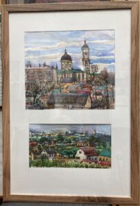 Акварельний диптих «Покровський собор у Хмельницькому» та «Дачне селище в Ружичній», датований 2022 р., пан Владислав вирішив подарувати музею. Саме таким побачив наше місто корінний харків’янин, гостюючи у хмельницьких родичів уже під час війни, – щільно забудованим і яскраво-життєрадісним та водночас спокійним, затишним і надихаючим.