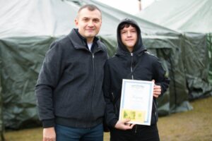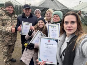 У «свій» день волонтери Хмельницької територіальної громади приймали вітання від міського голови Олександра Симчишина не в урочистій залі, а в наметах під відкритим небом. На свіжому повітрі зібралася понад сотня людей з добрими серцями, чистими помислами та щирими намірами.