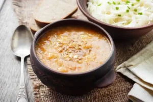 Третя страва — «Капусняк із затиркою та печеними бараболями», що готують у селі Балакири Городоцької громади.