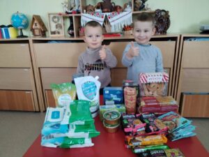 Так, родини вихованців та працівники ХЗДО №29 зібрали 13 коробок необхідних речей для наших захисників. А це газові балончики, хімічні грілки для рук і ніг, локшина, супи, каші швидкого приготування, консерви, чай, кава, смаколики, скотч, стяжки, вологі серветки, шампуні, рідке мило, теплі шкарпетки, малюнки й обереги.