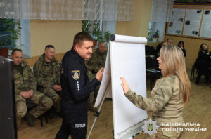 Упродовж тренінгу правоохоронці навчалися грамотно надавати первинну психологічну підтримку населенню під час кризових ситуацій, опановували навички психологічної самодопомоги. Обговорювали і відпрацьовували на практиці, як спілкуватися з потерпілими та свідками на місцях обстрілів, ДТП, різного роду надзвичайних ситуацій.