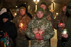 Хвилиною мовчання учасники заходу вшанували пам’ять усіх загиблих внаслідок російської агресії. У різдвяній тиші вони запалили свічки від Вифлеємського вогню миру, який пластуни привезли до України на початку грудня з місця народження Ісуса Христа.
