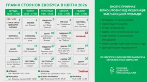Хмельницький офіс “Розумний довкілля” оприлюднив графік стоянок мобільного пункту збору небезпечних відходів на квітень. Цього місяця на містян та жителів громади чекають суттєві оновлення у маршруті.